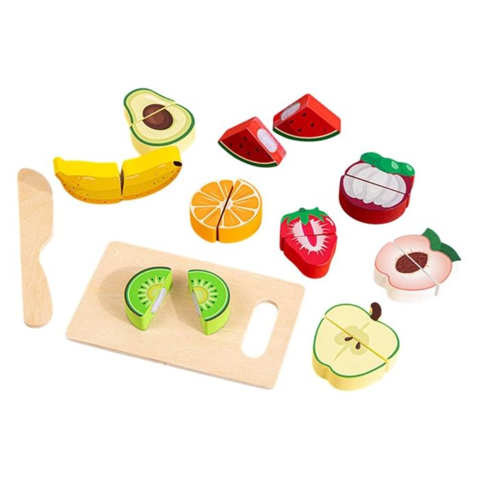 | Beneficios | Cortar y conectar: el proceso de corte se siente y suena realista, logrando que cada pequeño chef pueda cortarlos y volver a pegar fácilmente gracias al pega pega de velcro. Divertido y educativo: ayuda a aprender los nombres básicos de los alimentos y se puede utilizar para enseñar habilidades, reconocimiento de colores, clasificación y agrupación. Ayuda a aumentar el vocabulario y mejorar el reconocimiento de colores y formas. Alientan a su hijo a usar su imaginación y desarrollar el juego de roles mientras prepara comidas en la cocina. |