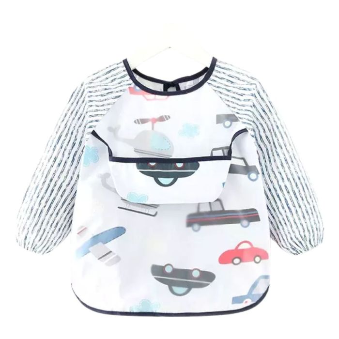 | Descripción | Mandil impermeable manga larga ideal para mantener a su pequeño cómodo y limpio. Incluye plástico impermeable en el pecho y bolsillo, mangas con elástico y dos sujetadores en la parte de la espalda. Fácil de limpiar y resistente a manchas. |