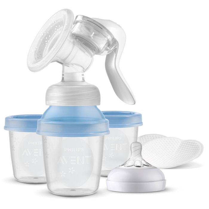 - Incluye: 2 protectores mamarios, 1 cubierta de almohadilla, 1 kit de extracción con mango, 3 vasos de almacenamiento, 1 adaptador y 1 tetina 0m+.