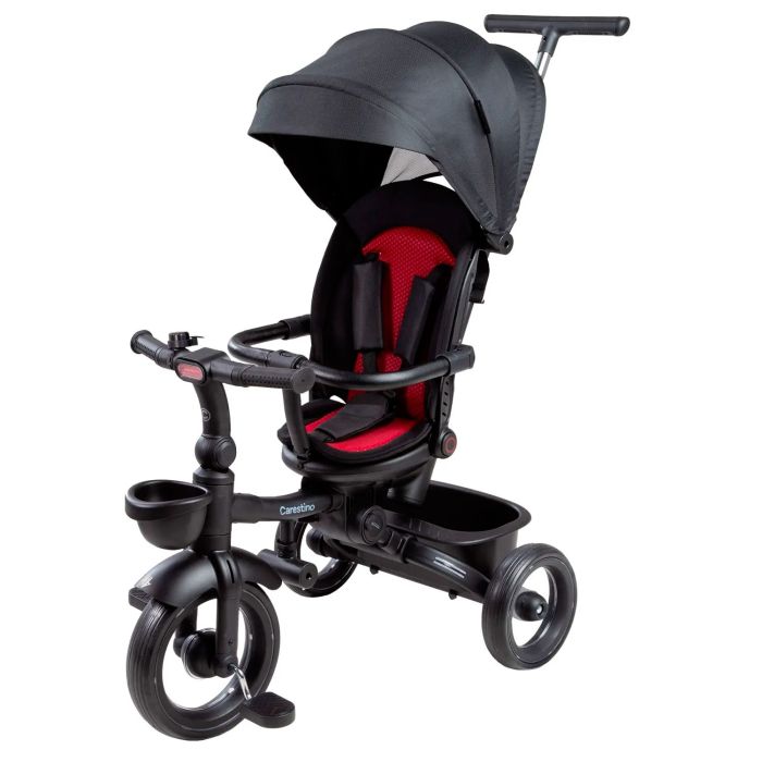 El Triciclo SAFARI Negro de Carestino es el compañero ideal para los pequeños aventureros que comienzan a explorar el mundo. Diseñado para acompañar a tu hijo desde los 18 meses hasta los 25 kg, este triciclo evolutivo se adapta a cada etapa de su desarrollo, brindando seguridad y confort en cada paseo.
