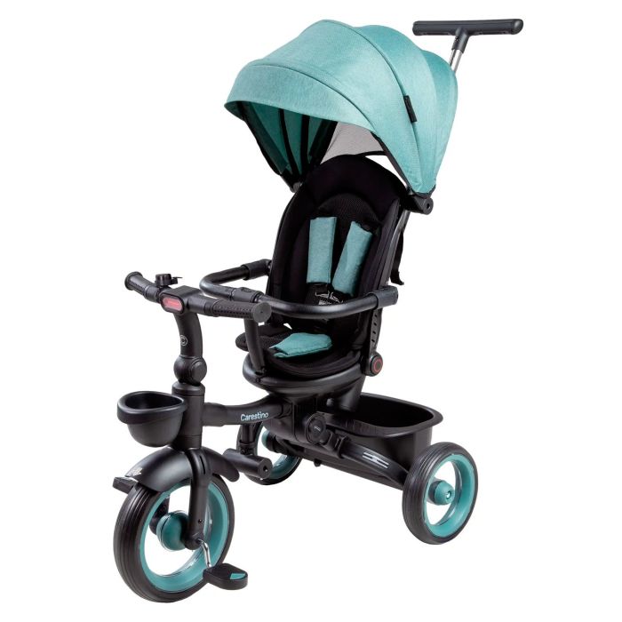 El Triciclo SAFARI Océano de Carestino es el compañero ideal para acompañar a tu pequeño en sus primeras aventuras. Diseñado para niños desde los 18 meses hasta los 25 kg, este triciclo evolutivo se adapta a cada etapa de crecimiento, brindando seguridad y confort en cada paseo.